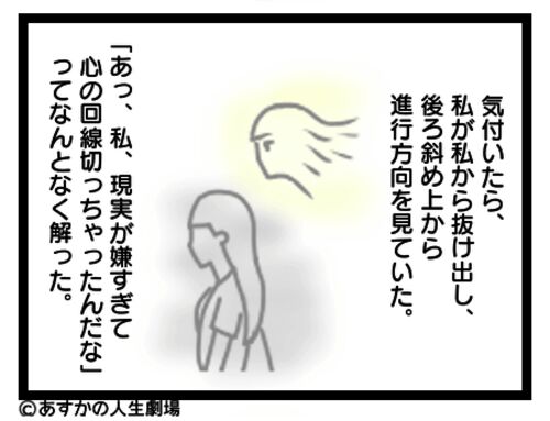 強いストレスを受けたときに、身体から意識が抜け出したことがあります。離人感という状態ですが、これは生物の正常な自己防衛機能だそうです。 気付いたら自分の後ろ斜め上から見下ろしてました。この時、意識はあるのですが、感情はありませんでした。感情…